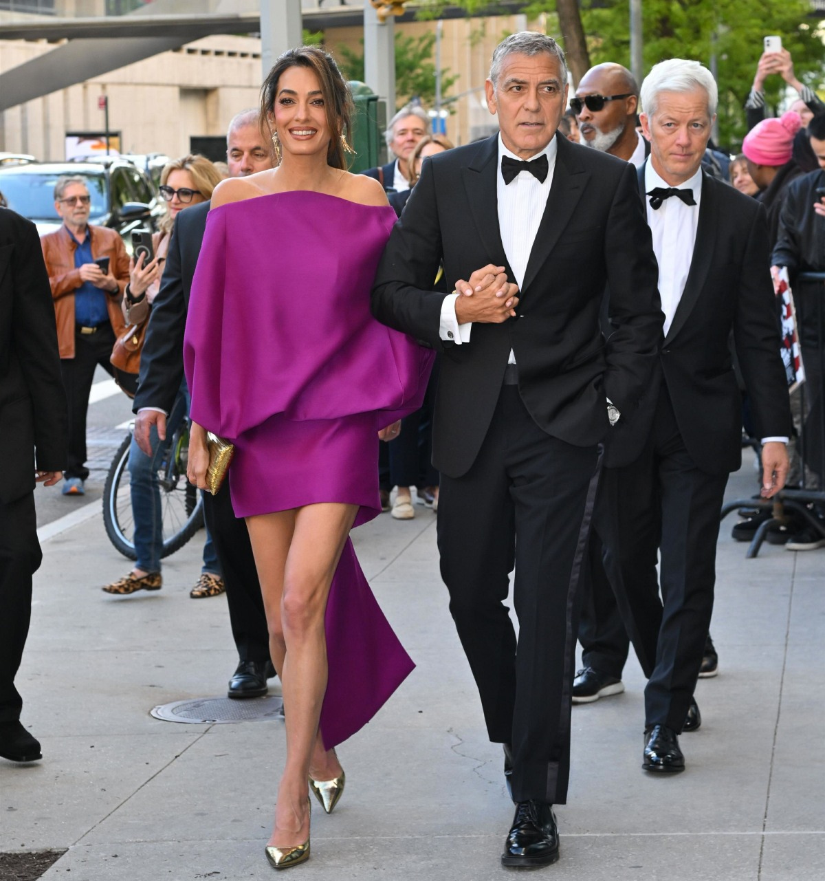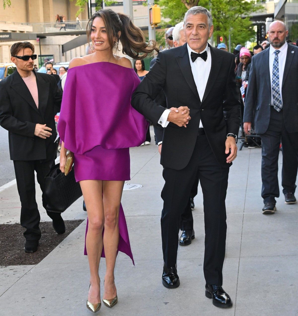 So why did George and Amal deign to fly back to America? George was being honored at the Chaplin Award Gala in NYC. “I’ll only show up for awards shows” is not some bold profile in courage, George. But I guess the real story is that Amal looks fantastic. She wore a vivid purple Balenciaga minidress which is super-flattering. She loves a “leggy” look and she’s a big fan of Balenciaga’s minidresses and mullet dresses.