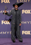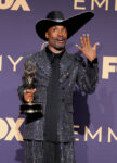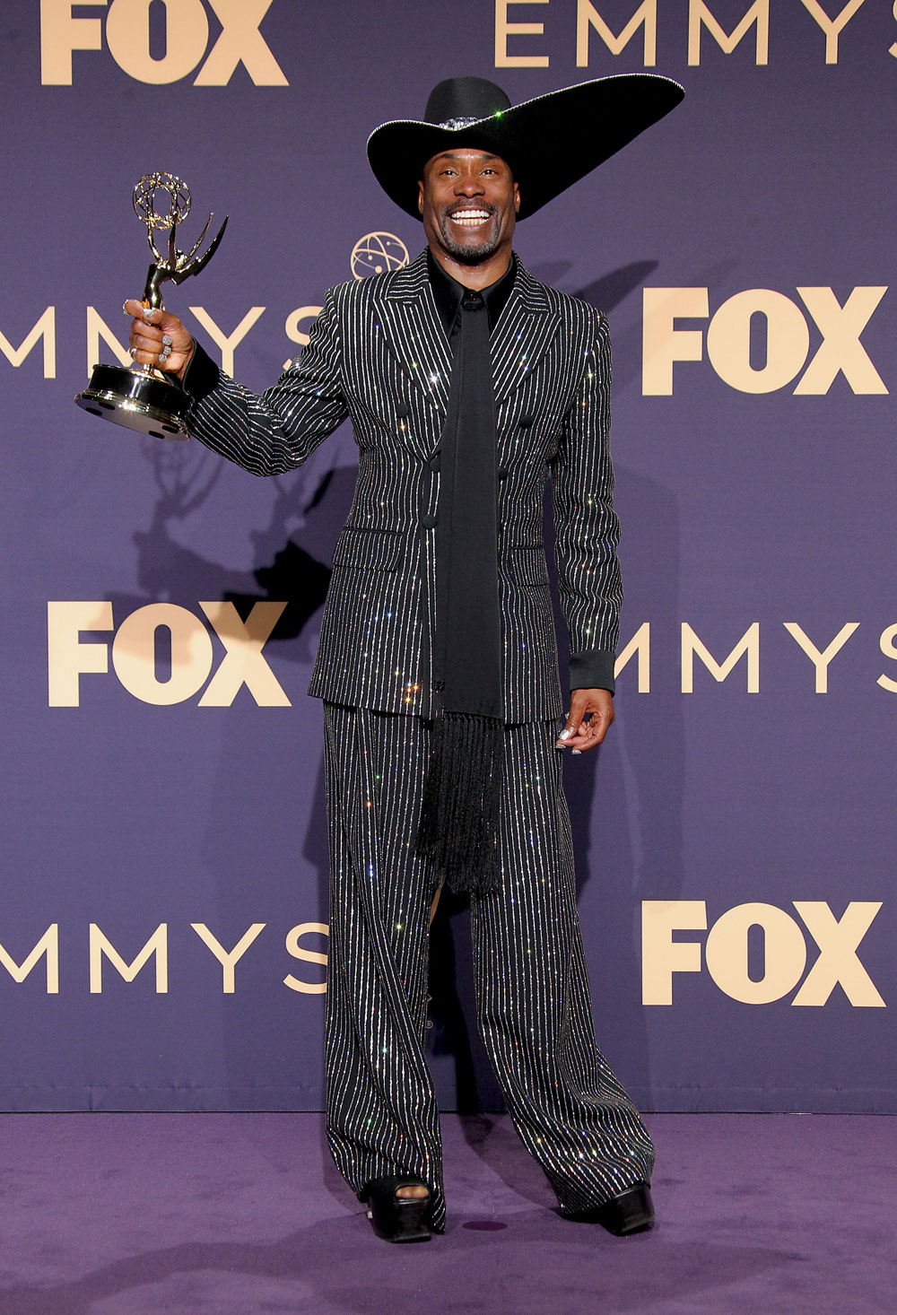 Billy Porter in a Michael Kors sequin zoot suit at the 2019 Emmys, holding his Emmy
