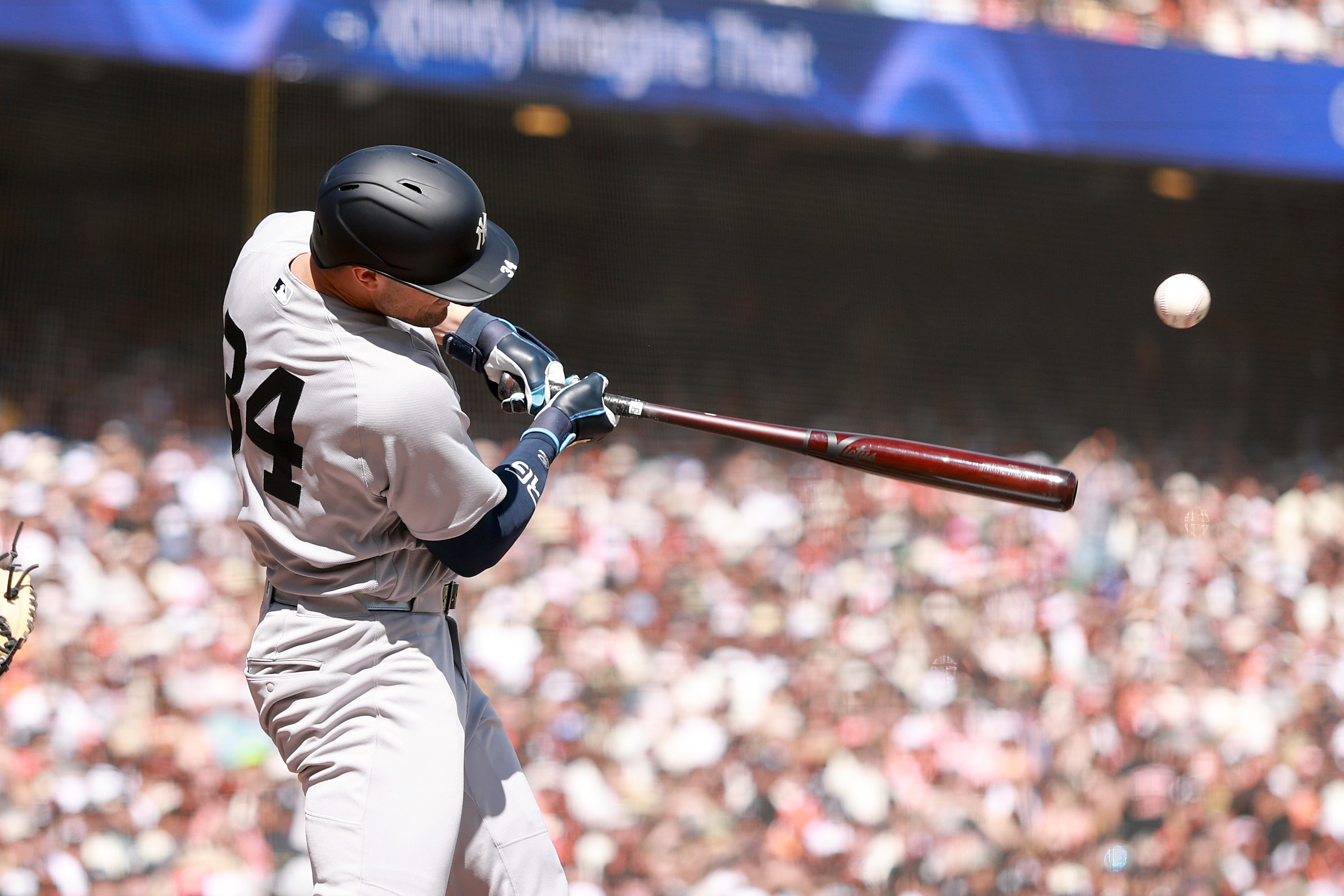 GettyRandal Grichuk #34 of the New York Yankees bats against the San Francisco Giants at Oracle Park on March 27, 2026 in San Francisco, California.