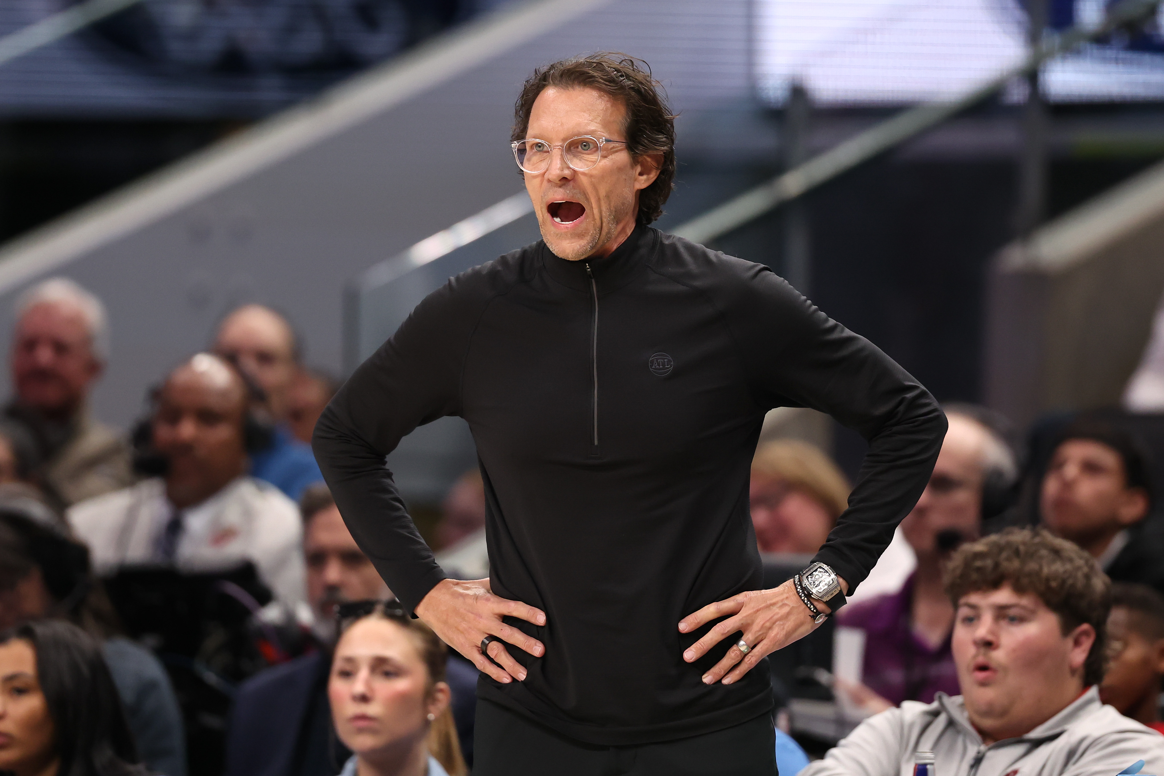 GettyDALLAS, TEXAS – MARCH 18: Head coach Quin Snyder of the Atlanta Hawks calls out to his team during the third quarter of the game against the Dallas Mavericks at American Airlines Center on March 18, 2026 in Dallas, Texas. (Photo by Sam Hodde/Getty Images)