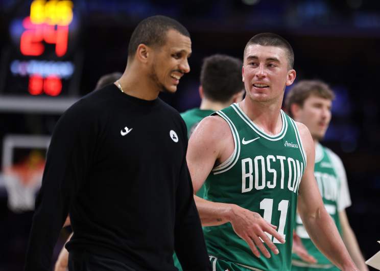 GettyLOS ANGELES, CALIFORNIA – FEBRUARY 22: Payton Pritchard #11 of the Boston Celtics talks to head coach Joe Mazulla during the second half of their game against the Los Angeles Lakers at Crypto.com Arena on February 22, 2026 in Los Angeles, California. NOTE TO USER: User expressly acknowledges and agrees that, by downloading and or using this photograph, User is consenting to the terms and conditions of the Getty Images License Agreement. (Photo by Luiza Moraes/Getty Images)