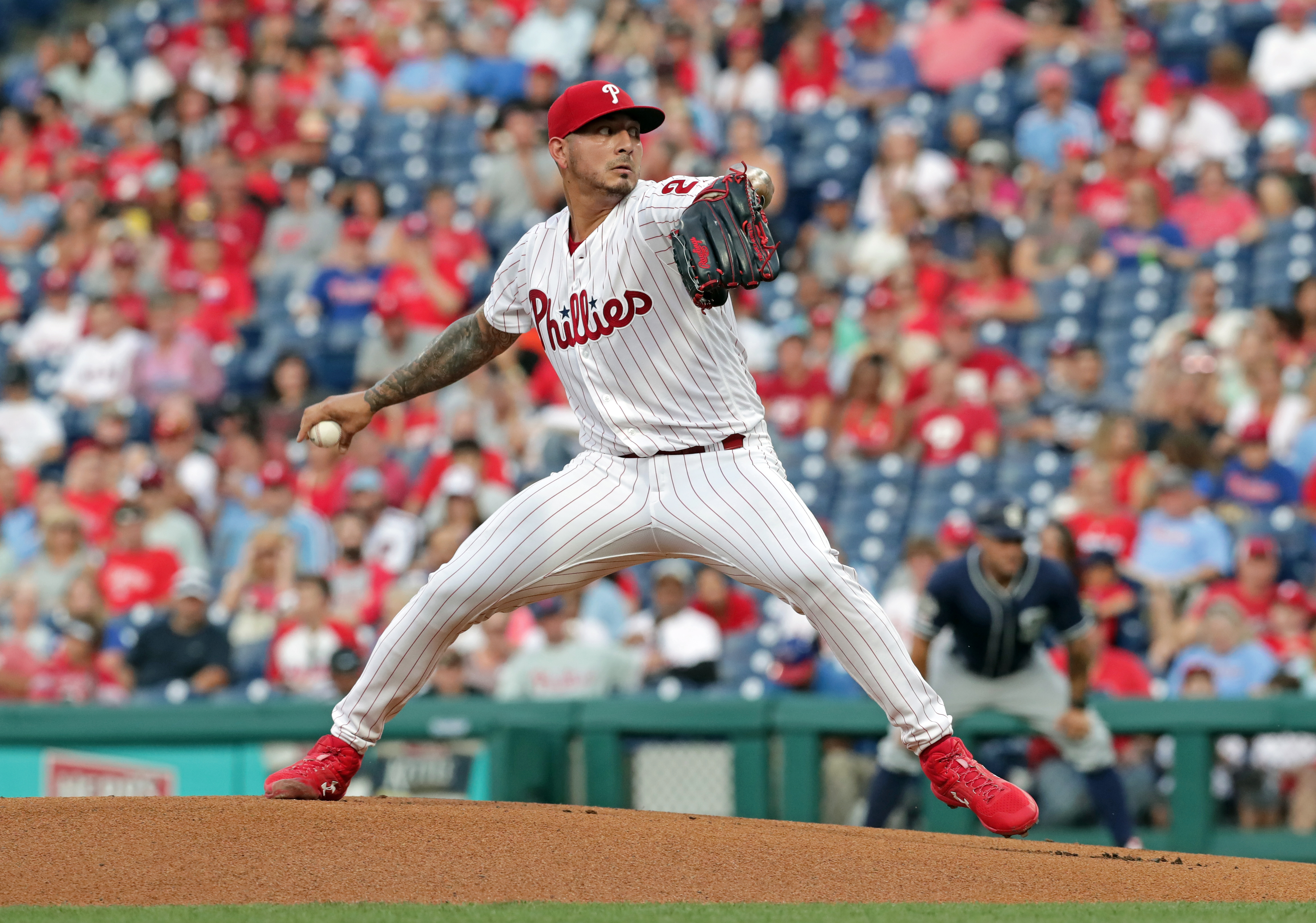 GettyStarting pitcher Vince Velasquez #21 of the Philadelphia Phillies delivers a pitch in the first inning during a game against the San Diego Padres at Citizens Bank Park on August 16, 2019 in Philadelphia, Pennsylvania.