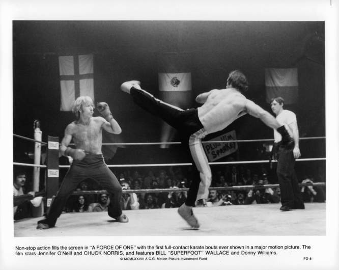 GettyChuck Norris in kickboxing rink in a scene from the film ‘A Force Of One’, 1979. (Photo by American Cinema Releasing/Getty Images)