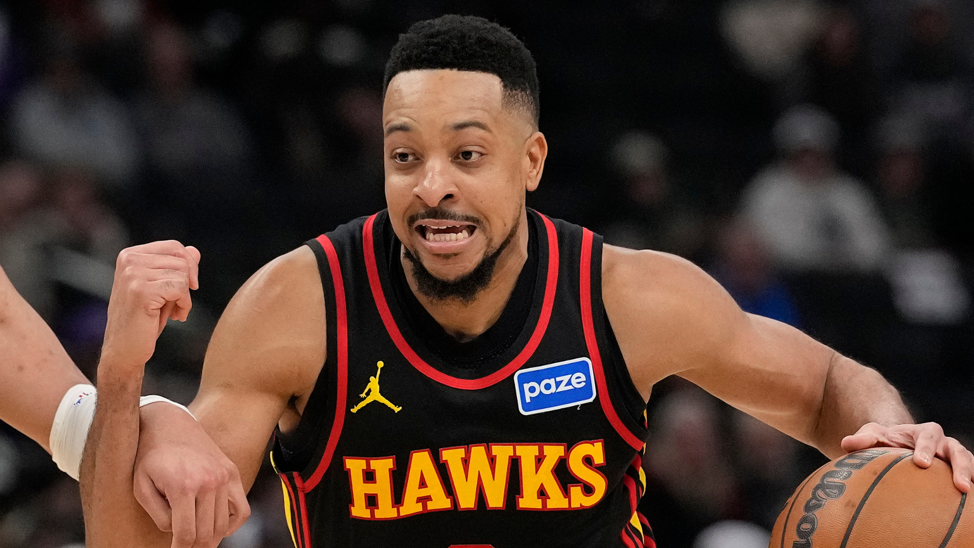 GettyCJ McCollum of the Atlanta Hawks during an NBA game against the Milwaukee Bucks.