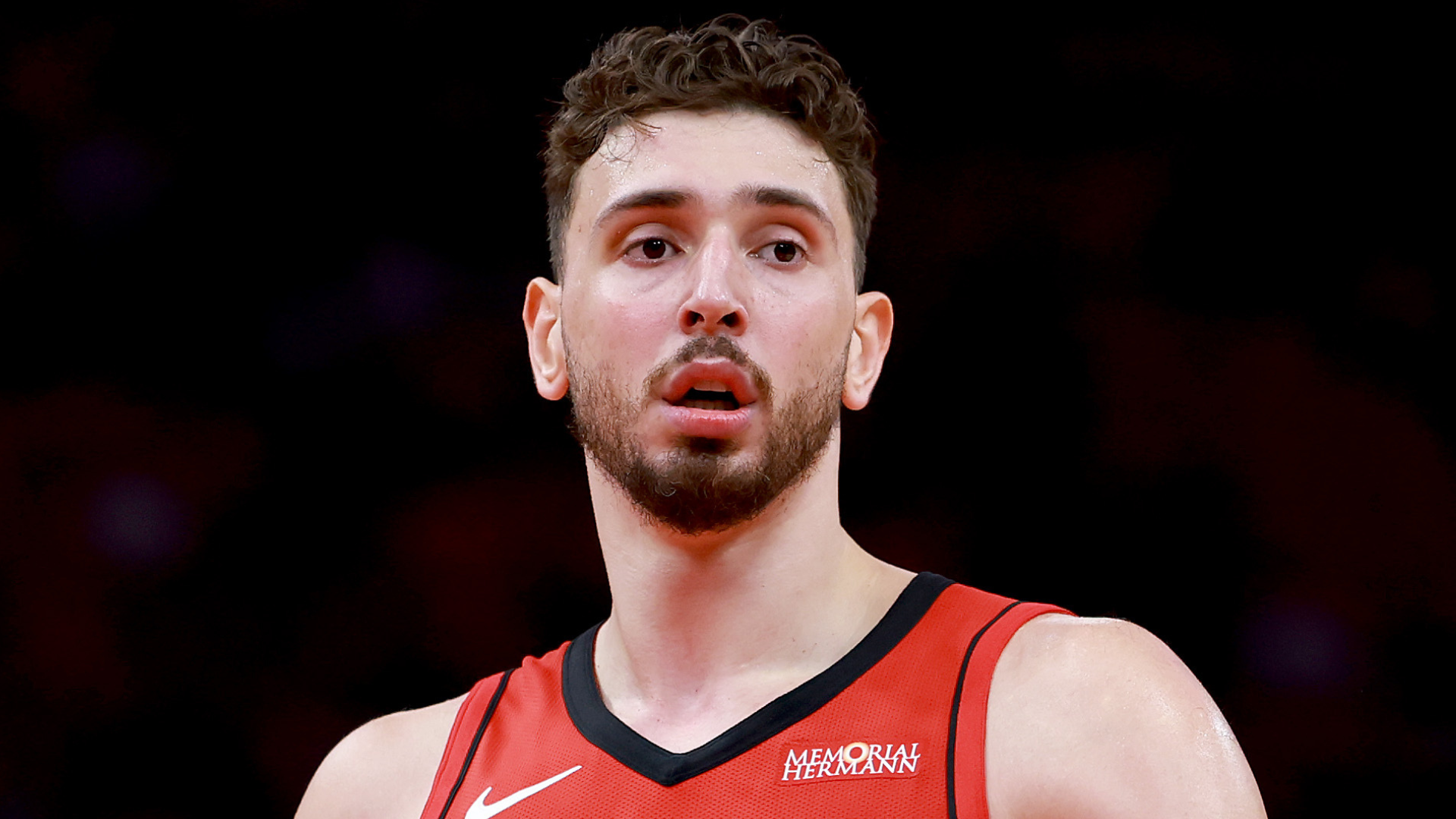 GettyAlperen Sengun #28 of the Houston Rockets reacts during the game against the Los Angeles Lakers at Toyota Center on April 24, 2026 in Houston, Texas.