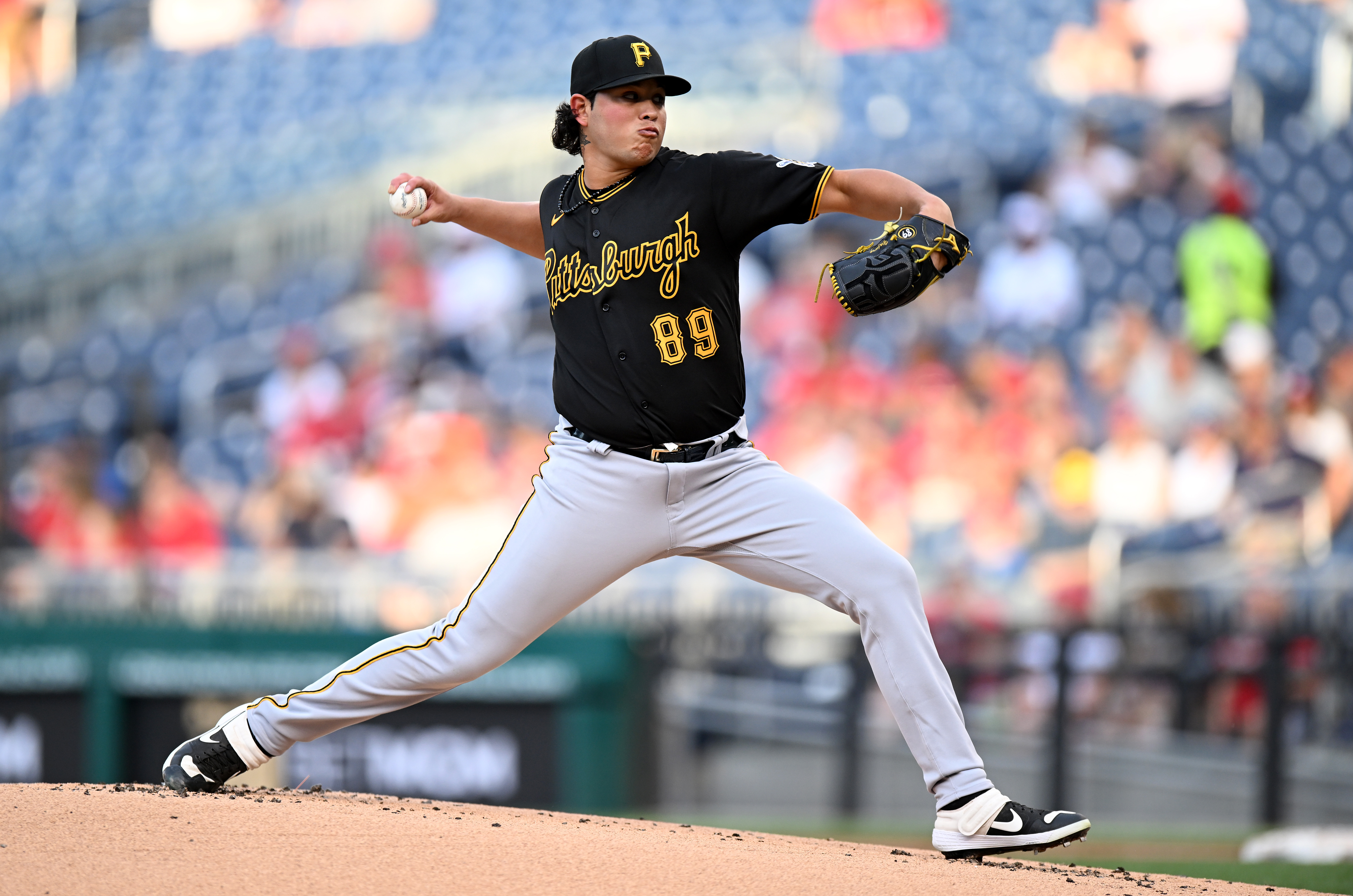 GettyMiguel Yajure #89 of the Pittsburgh Pirates pitches in the first inning against the Washington Nationals at Nationals Park on June 27, 2022 in Washington, DC.