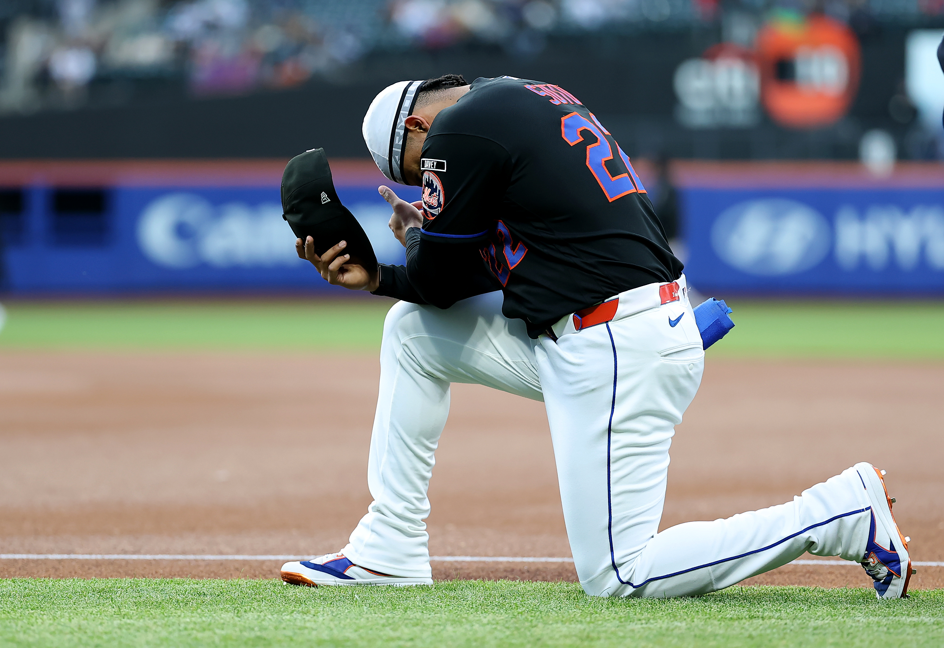 GettyJuan Soto #22 of the New York Mets takes a moment before the game against the Colorado Rockies at Citi Field on April 24, 2026 in the Flushing neighborhood of the Queens borough of New York City.