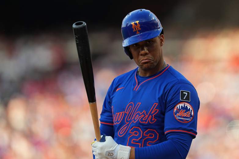 GettyPHILADELPHIA, PENNSYLVANIA – JUNE 21: Juan Soto #22 of the New York Mets reacts in the top of the first inning against the Philadelphia Phillies at Citizens Bank Park on June 21, 2025 in Philadelphia, Pennsylvania. (Photo by Mitchell Leff/Getty Images)
