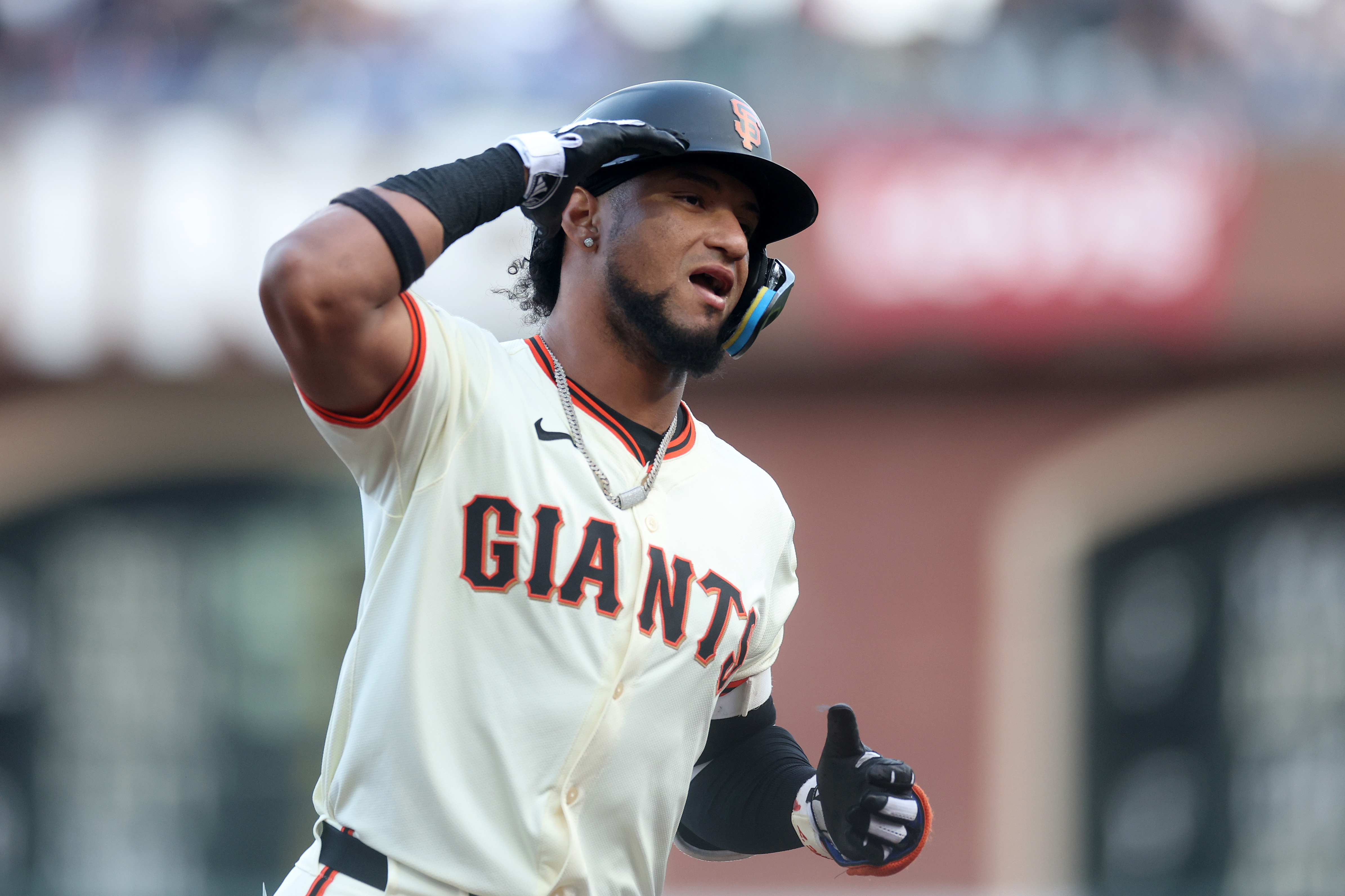 GettyMAY 13: Luis Matos #29 of the San Francisco Giants rounds the bases after he hit a home run against the Los Angeles Dodgers in the second inning at Oracle Park on May 13, 2024 in San Francisco, California.