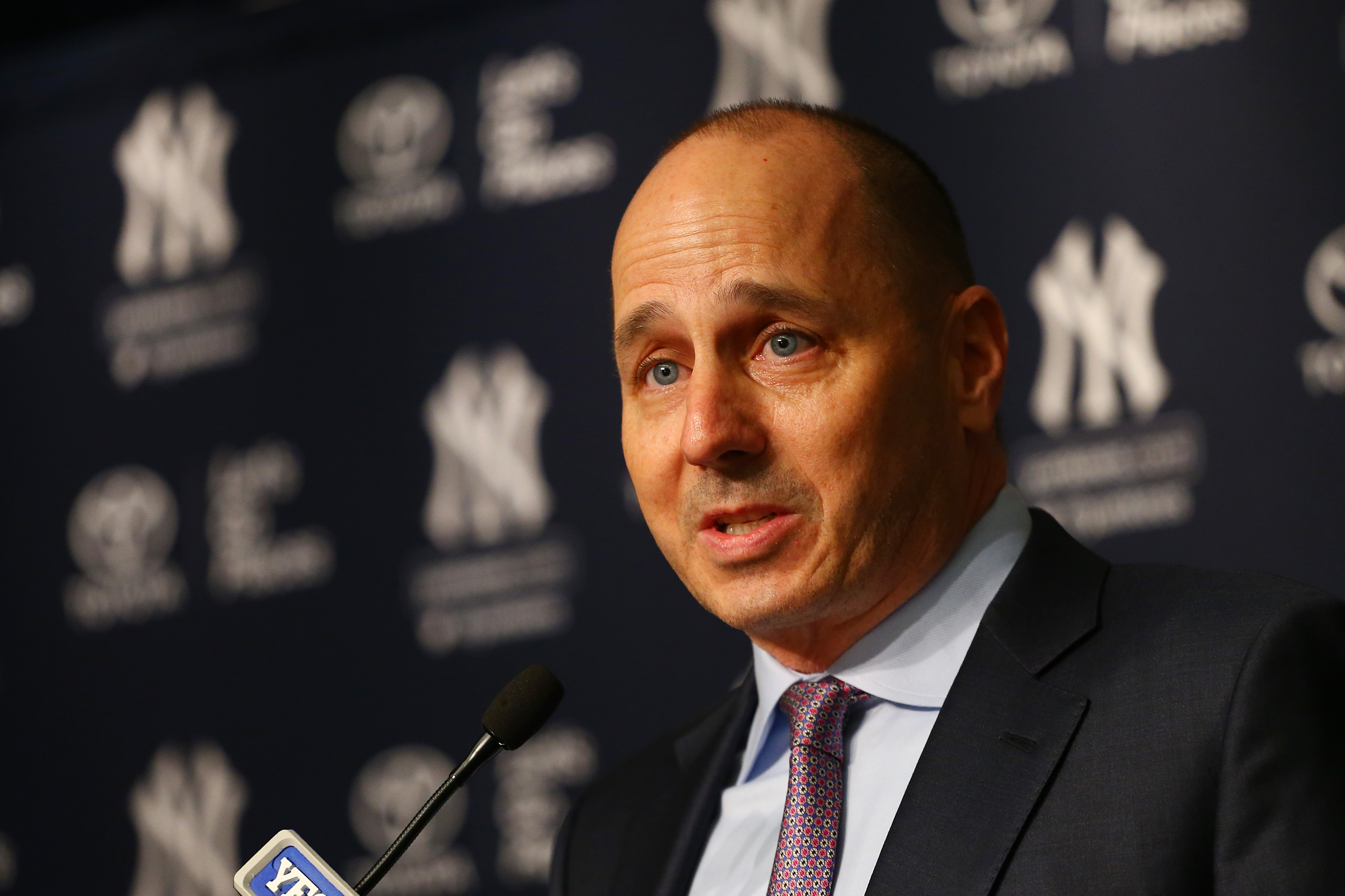 GettySenior Vice President, General Manager Brian Cashman speaks to the media prior to introducing Aaron Boone as New York Yankee manager at Yankee Stadium on December 6, 2017 in the Bronx borough of New York City.