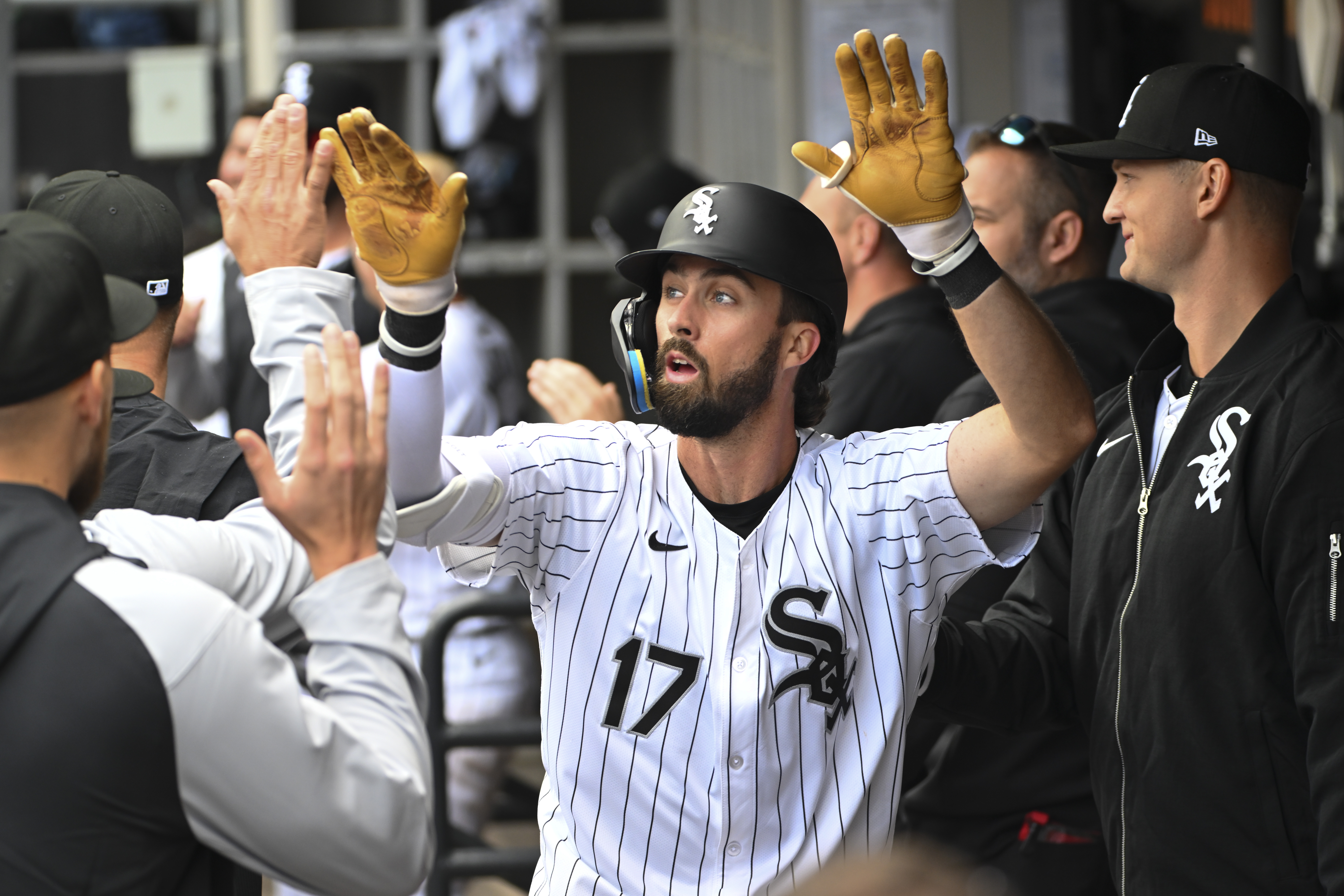 GettyBraden Shewmake #17 of the Chicago White Sox is congratulated by teammates following a home run during the second inning of a game against the Detroit Tigers at Guaranteed Rate Field on March 30, 2024 in Chicago, Illinois.
