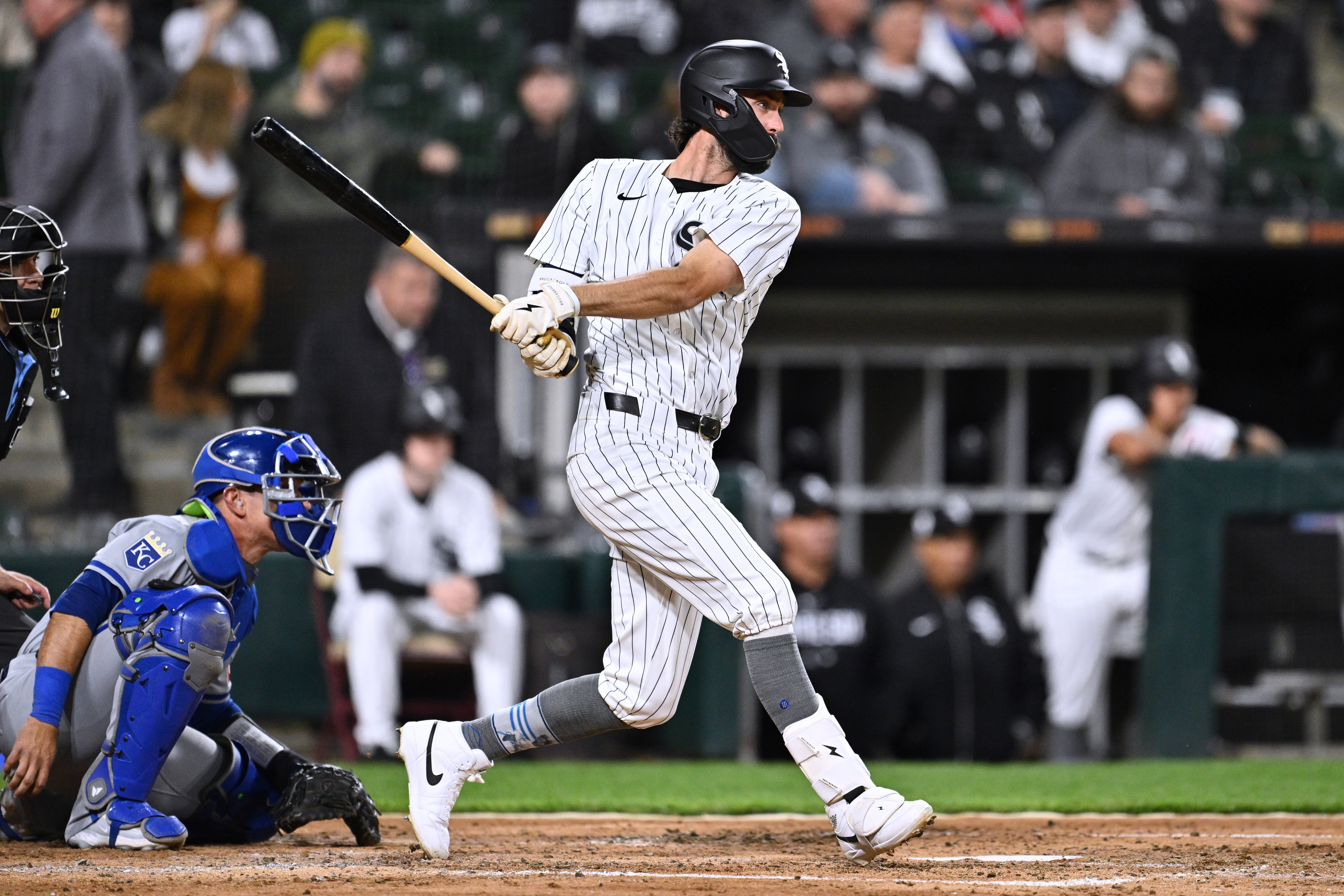 GettyBraden Shewmake #17 of the Chicago White Sox hits a single in the fifth inning against the Kansas City Royals at Guaranteed Rate Field on April 15, 2024 in Chicago, Illinois. All players are wearing the number 42 in honor of Jackie Robinson Day.