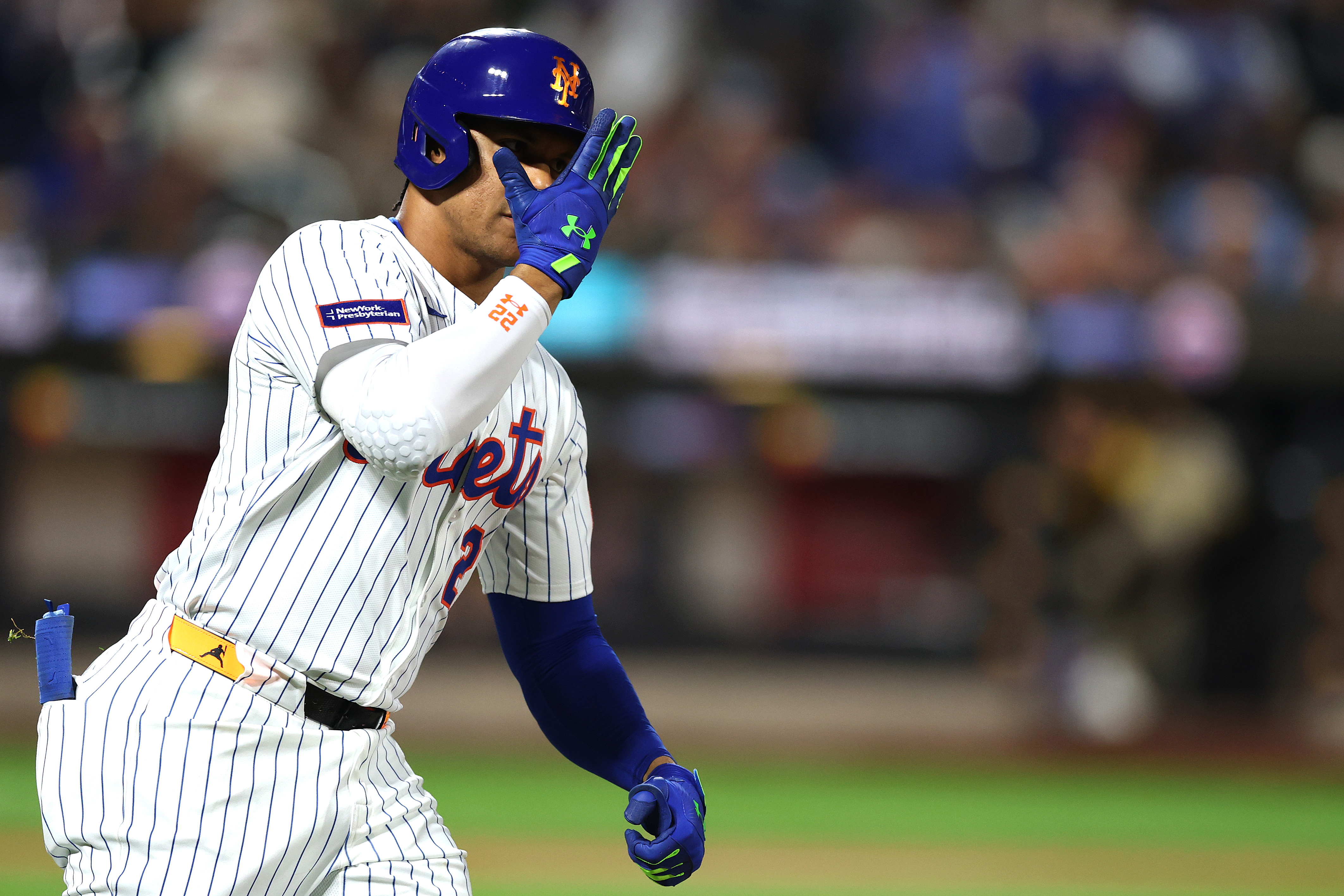 GettyJuan Soto #22 of the New York Mets reacts after hitting a home run during the fifth inning against the San Diego Padres at Citi Field on September 17, 2025 in the Queens borough of New York City.