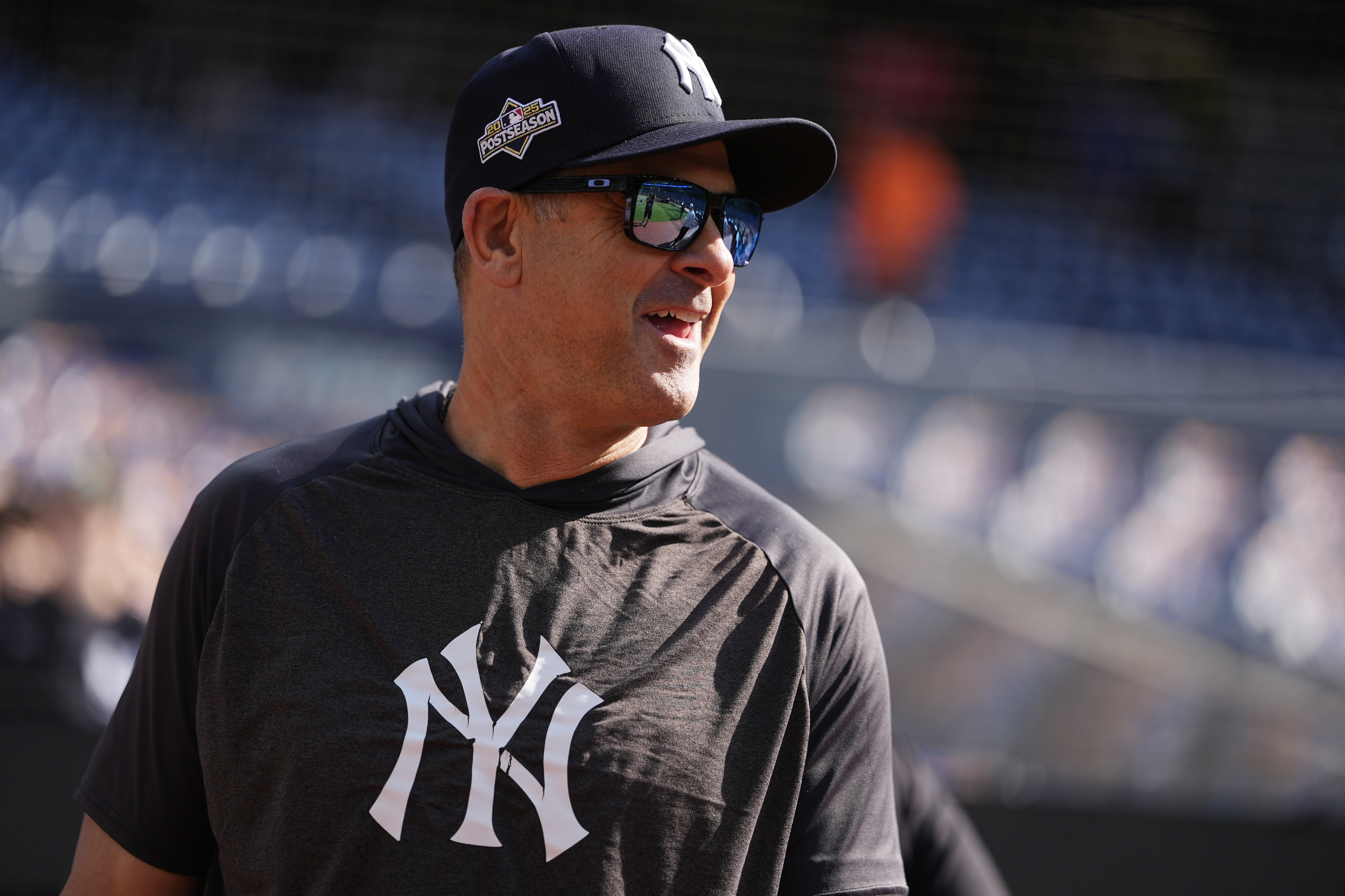 GettyManager Aaron Boone #17 of the New York Yankees looks on ahead of game one of the Division Series against the Toronto Blue Jays at Rogers Centre on October 04, 2025 in Toronto, Ontario.
