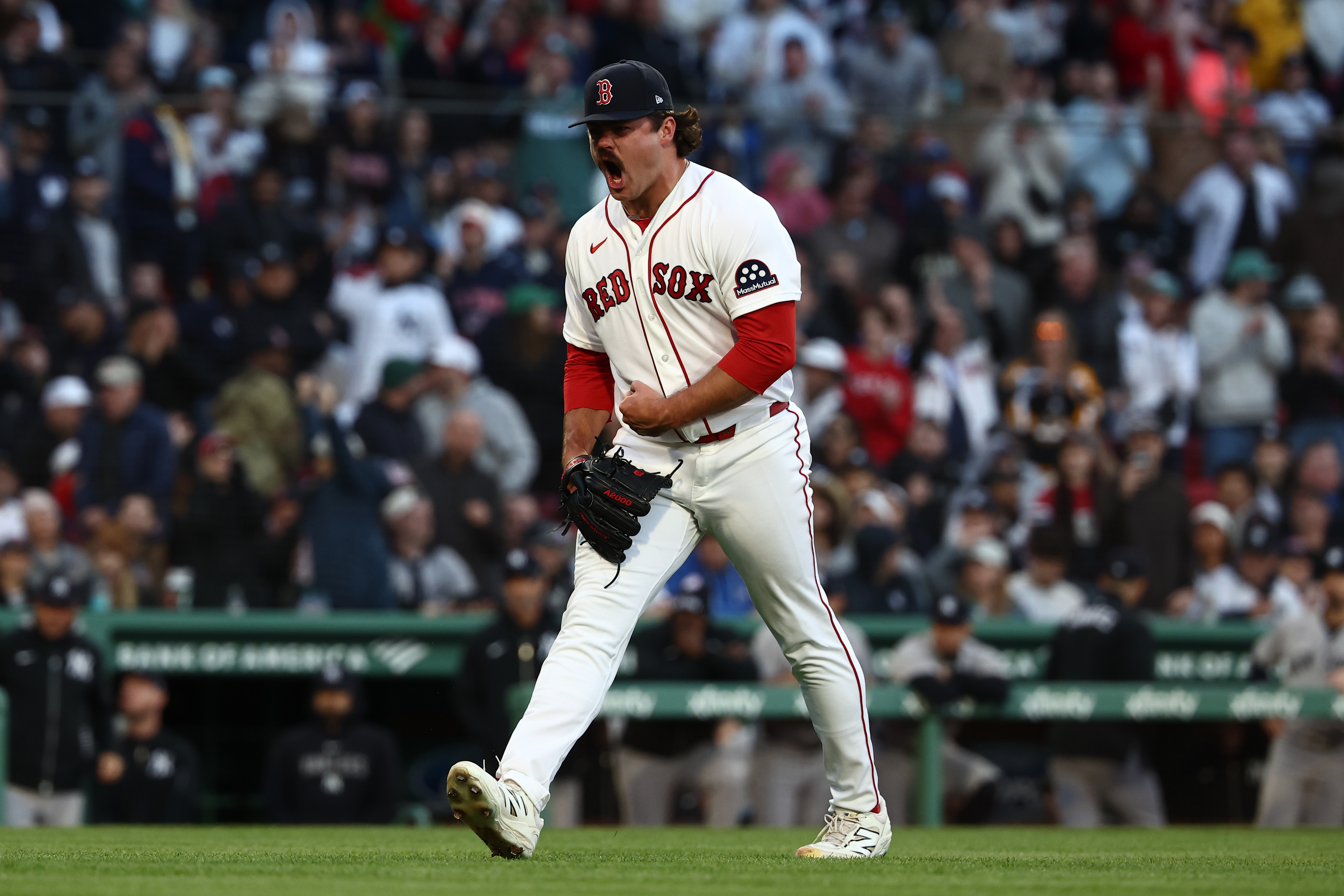 GettyBOSTON, MA – APRIL 23: Pitcher Payton Tolle #70 of the Boston Red Sox celebrates after strinking out Trent Grisham #12 of the New York Yankees with the bases loaded to end the fourth inning at Fenway Park on April 23, 2026 in Boston, Massachusetts. (Photo By Winslow Townson/Getty Images)