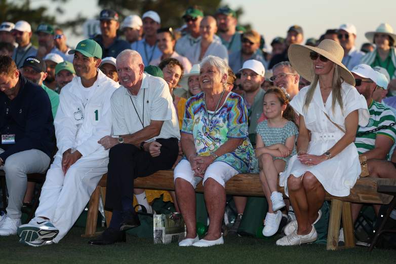 GettyAUGUSTA, GEORGIA – APRIL 12: (L-R) Caddie Harry Diamond, Parents Gerry and Rosie McIlroy, daughter Poppy and wife Eric Stoll look on during the the Green Jacket Ceremony after Rory McIlroy of Northern Ireland wins the final round of the 2026 Masters Tournament at Augusta National Golf Club on April 12, 2026 in Augusta, Georgia. (Photo by Andrew Redington/Getty Images)
