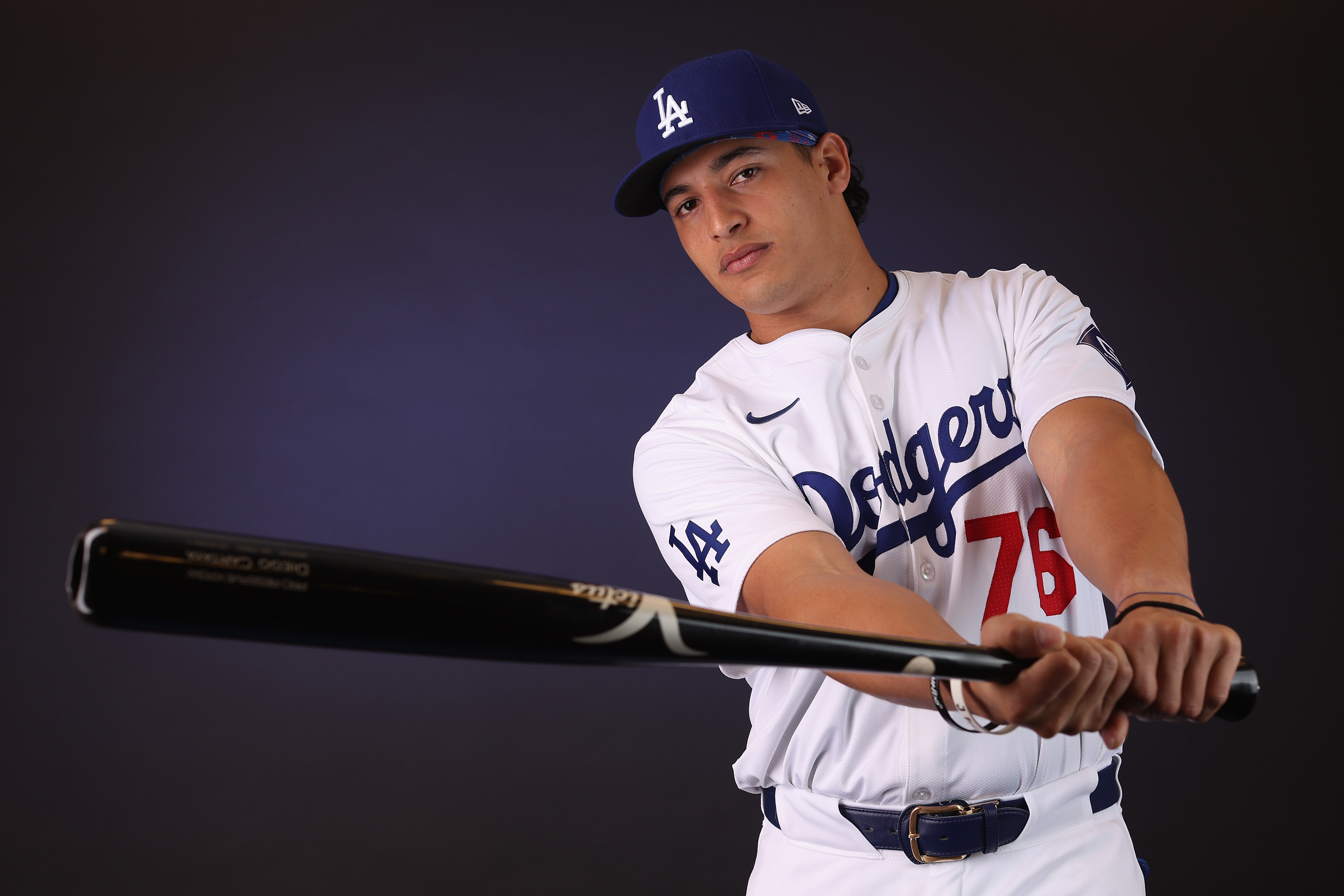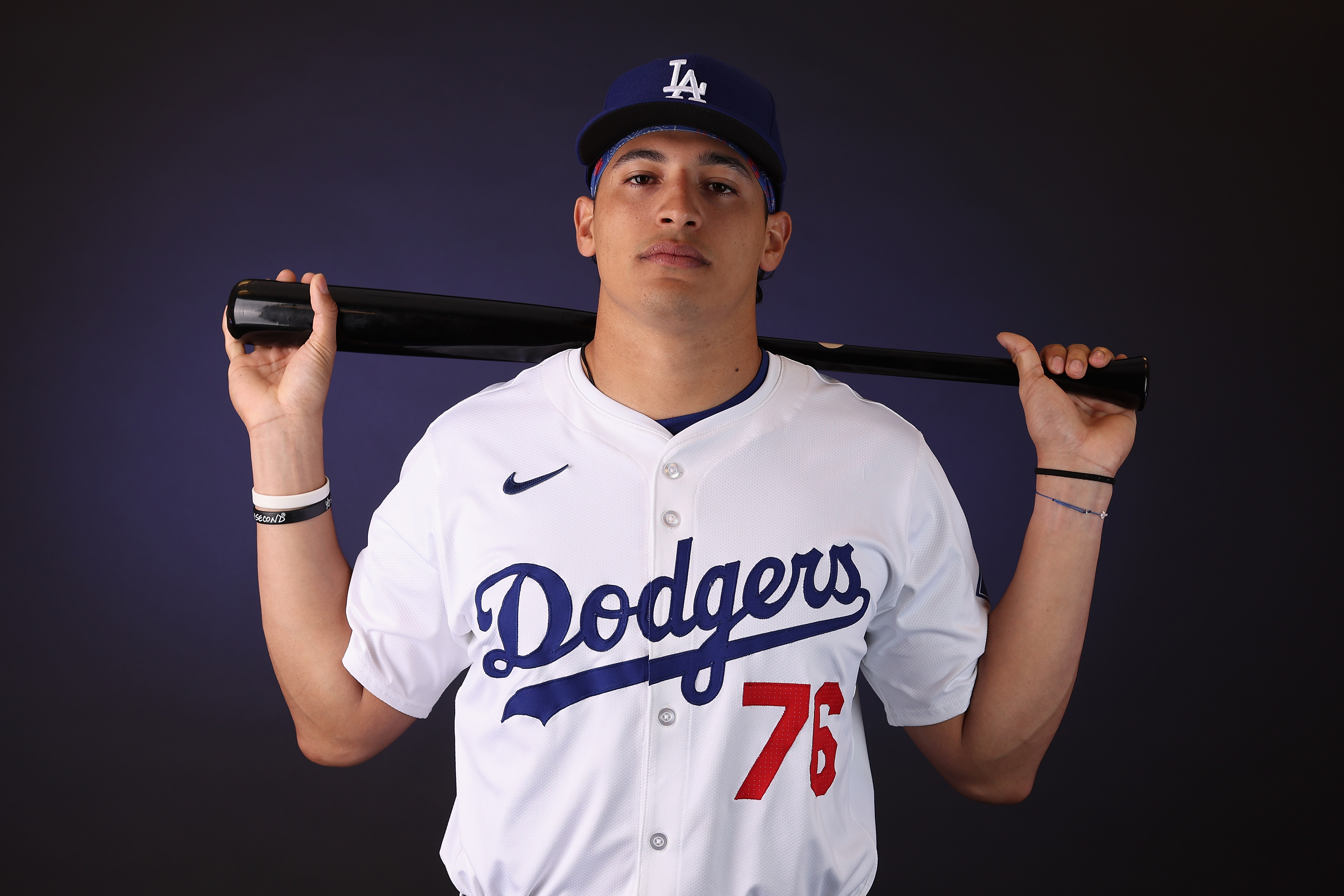 GettyDiego Cartaya #76 of the Los Angeles Dodgers poses for a portrait during photo day at Camelback Ranch on February 21, 2024 in Glendale, Arizona.