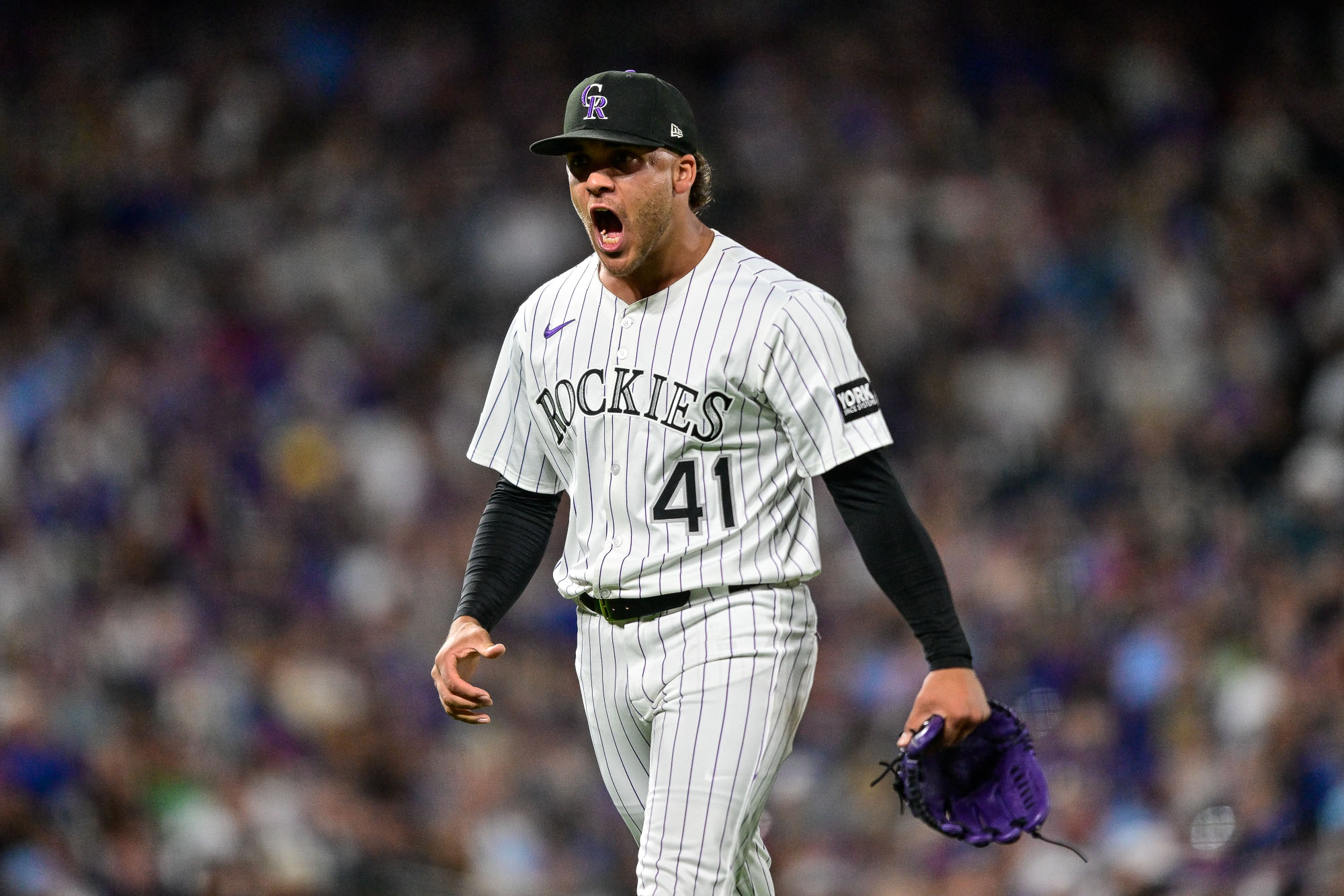 GettyLuis Peralta #41 of the Colorado Rockies celebrates after pitching a scoreless top of the seventh inning against the Chicago Cubs at Coors Field on August 30, 2025 in Denver, Colorado.