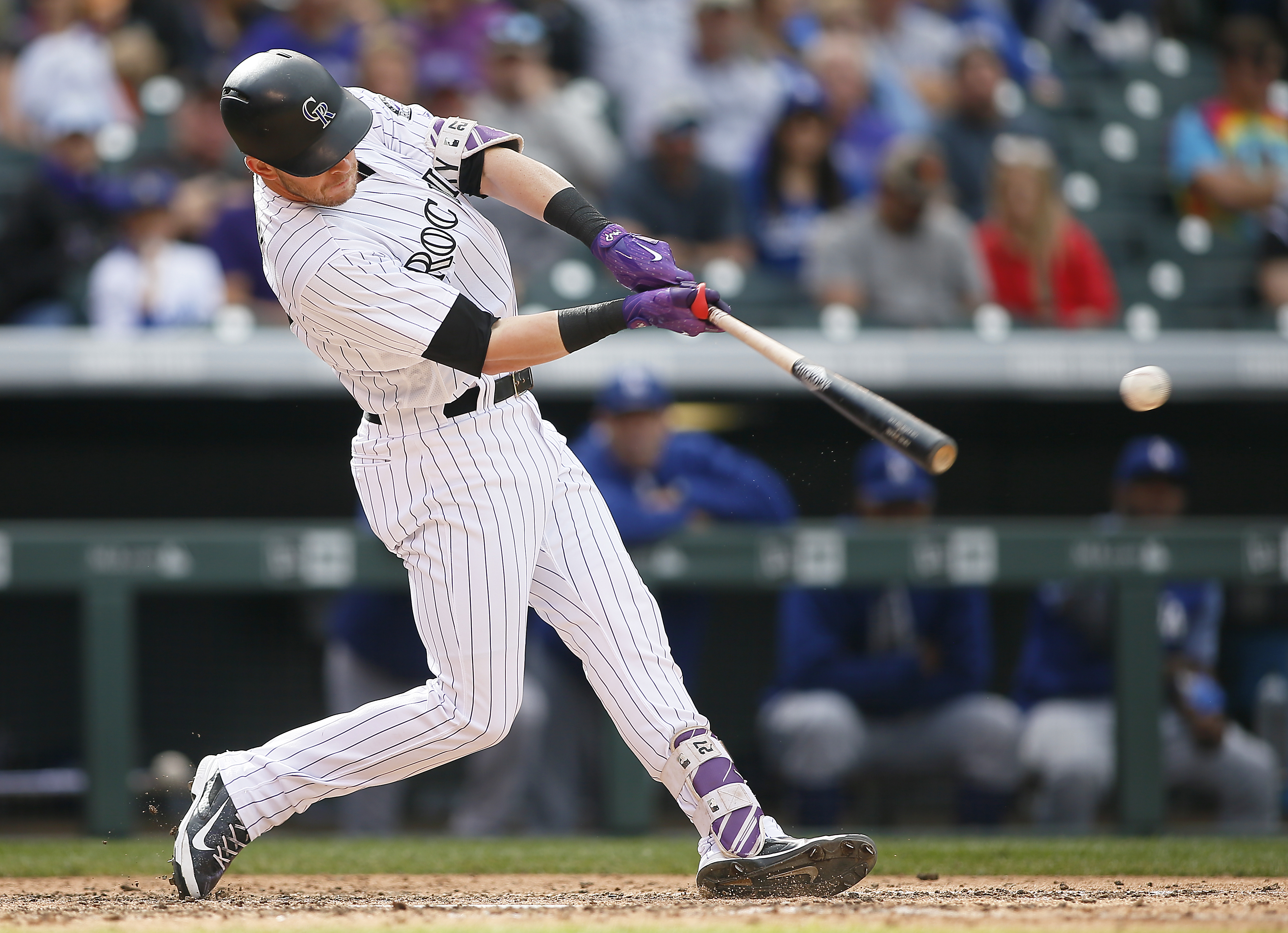GettyTrevor Story #27 of the Colorado Rockies connects for a double in the sixth inning of a regular season MLB game between the Colorado Rockies and the visiting Los Angeles Dodgers at Coors Field on October 1, 2017 in Denver, Colorado.