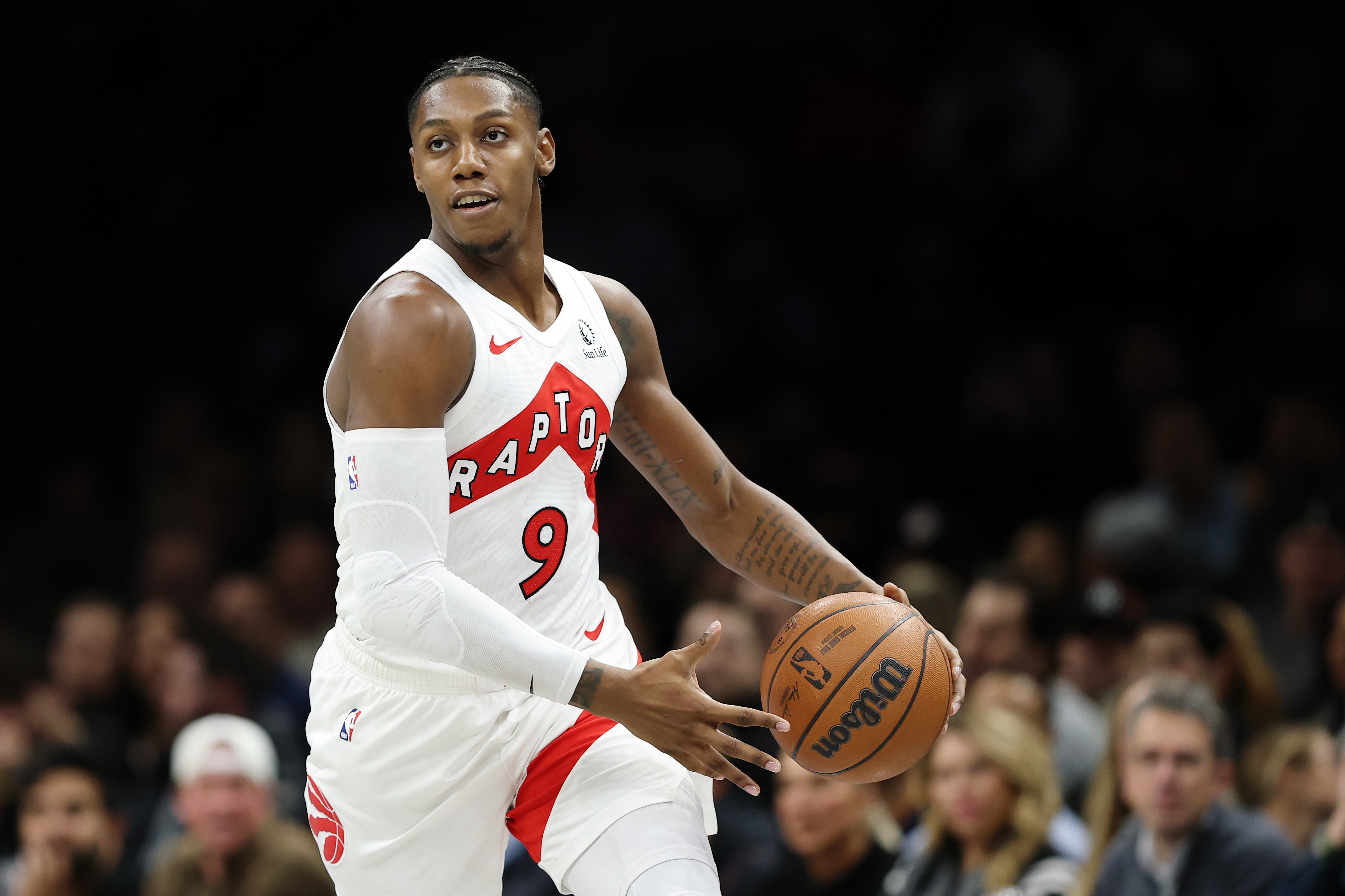 GettyRJ Barrett #9 of the Toronto Raptors in action during the game against the Brooklyn Nets at Barclays Center on November 11, 2025 in the Brooklyn borough of New York City. The Raptors won 119-109.