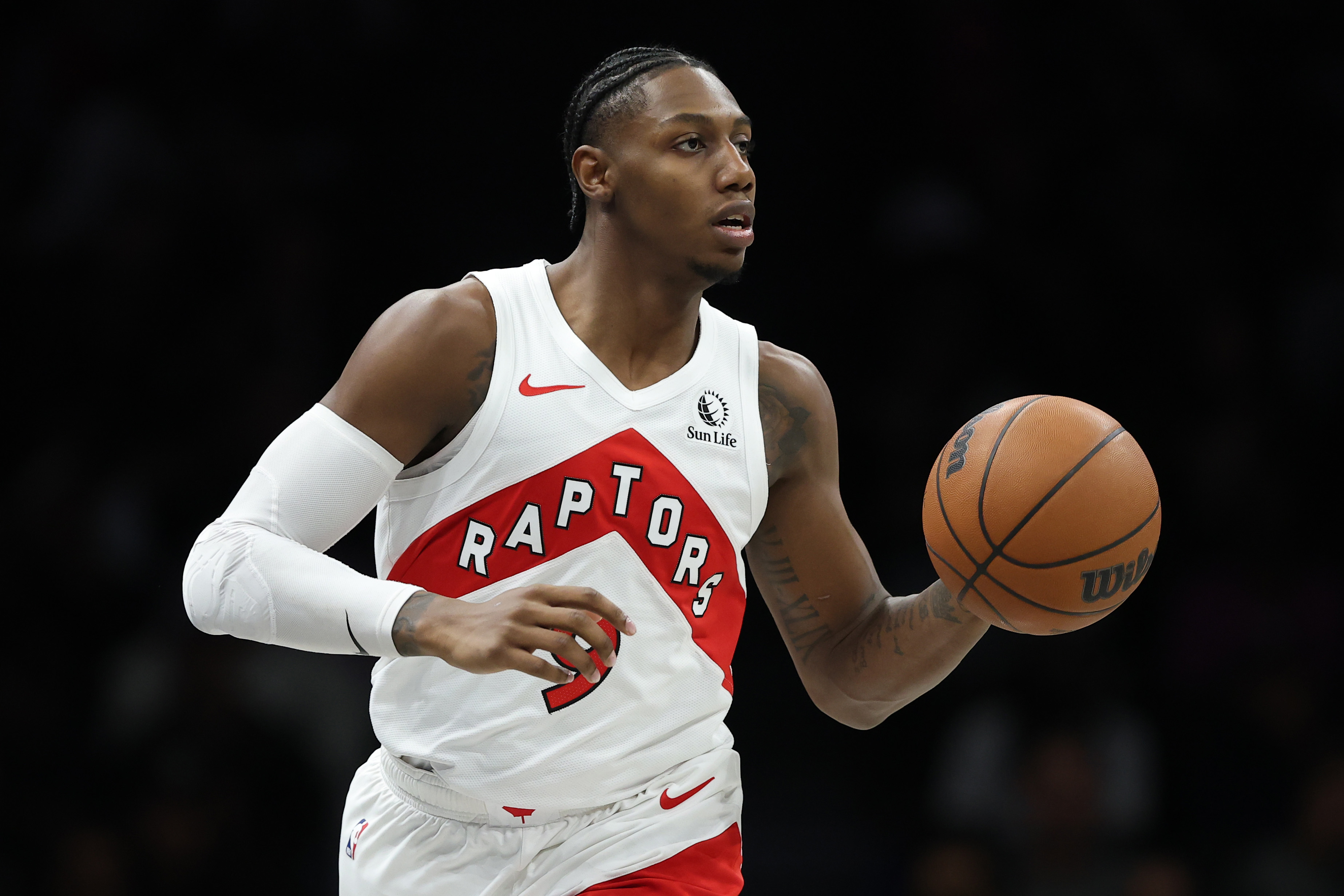 GettyRJ Barrett #9 of the Toronto Raptors dunks against the Golden State Warriors during first half of their NBA game at Scotiabank Arena on December 28, 2025 in Toronto, Ontario, Canada.
