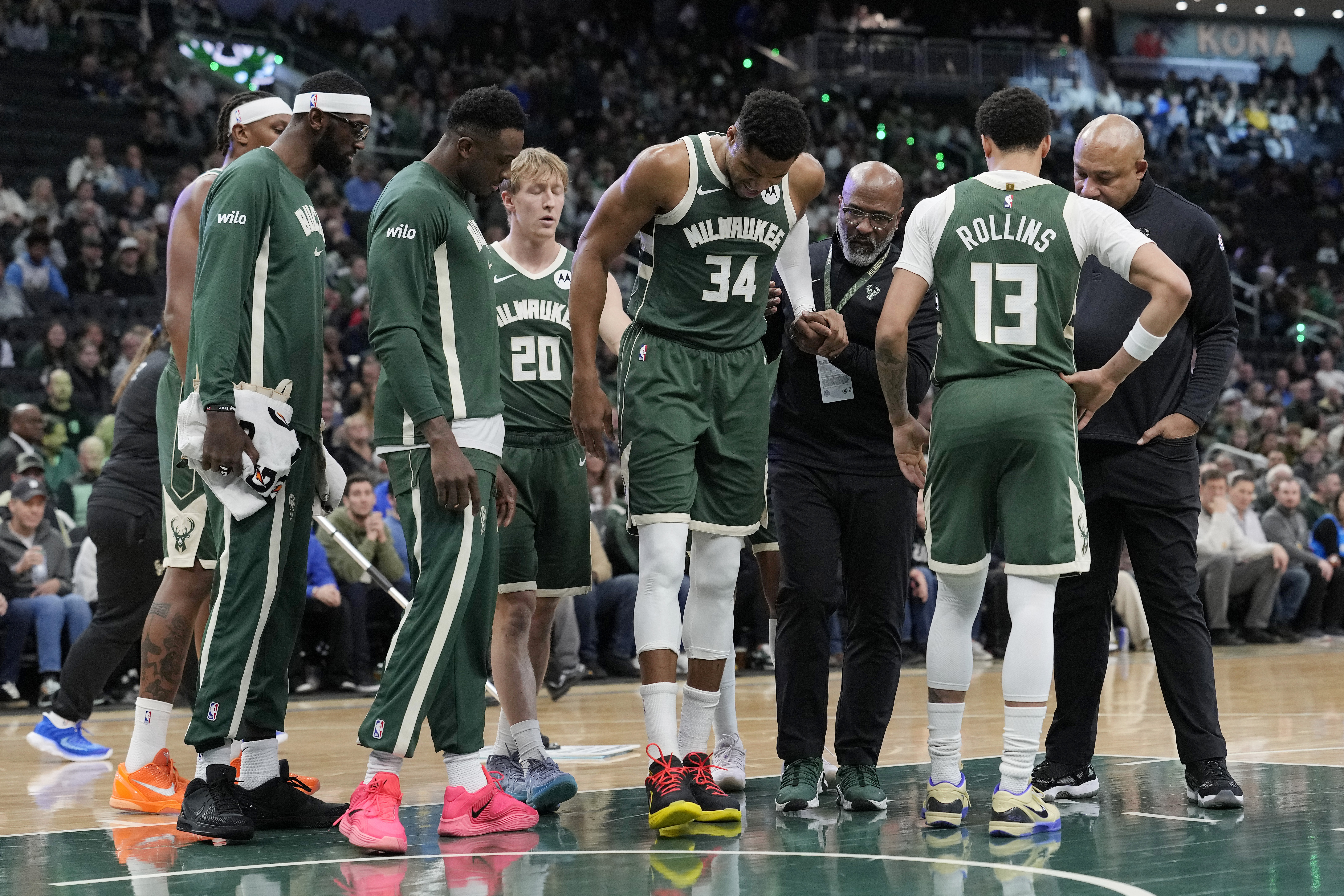 GettyMILWAUKEE, WISCONSIN – DECEMBER 03: Giannis Antetokounmpo #34 of the Milwaukee Bucks reacts after an apparent injury against the Detroit Pistons during the first quarter at Fiserv Forum on December 03, 2025 in Milwaukee, Wisconsin. (Photo by Patrick McDermott/Getty Images)